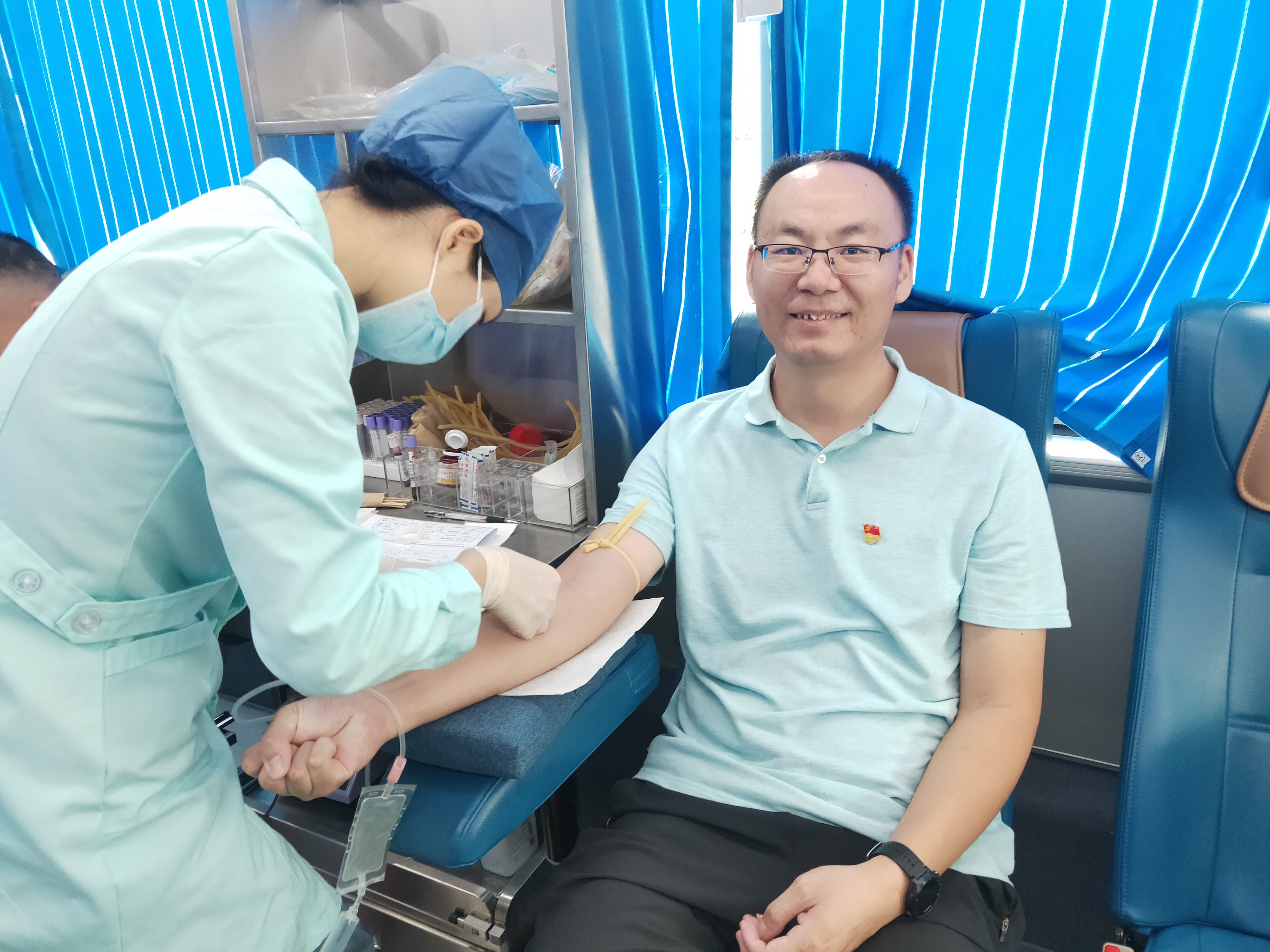 在獻血隊伍中,有不少黨員已多次參加獻血活動。“我幾乎每年都會獻血,這次獻了400毫升。作為一名共產黨員,積極響應為民辦實事的號召,能夠幫助到他人,我感到非常開心。”江南污水處理廠黨支部書記、廠長何振說道。