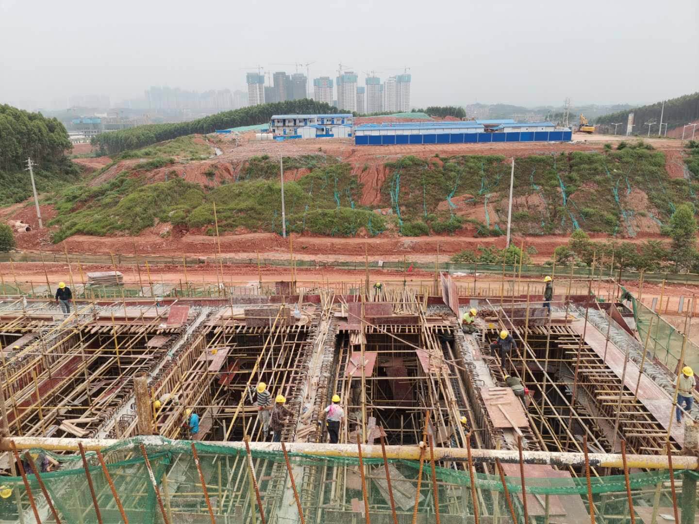 “那平江污水處理廠原始地貌起伏較大,且存在“兩大兩小”四個魚塘,平均高程82米,北側有37米高邊坡,采用‘逐級放坡+樁板墻’的形式進行防護,施工難度較大”,莫金海說,“項目復工后,在做好疫情防控和施工安全措施的前提下,我們立即組織施工單位全面提速進入施工攻堅,工作面多的時候單日最高有超過300個工人同時施工,全體參建人員克難攻堅,加快推進,截至目前,項目已完成60%以上工程量”。