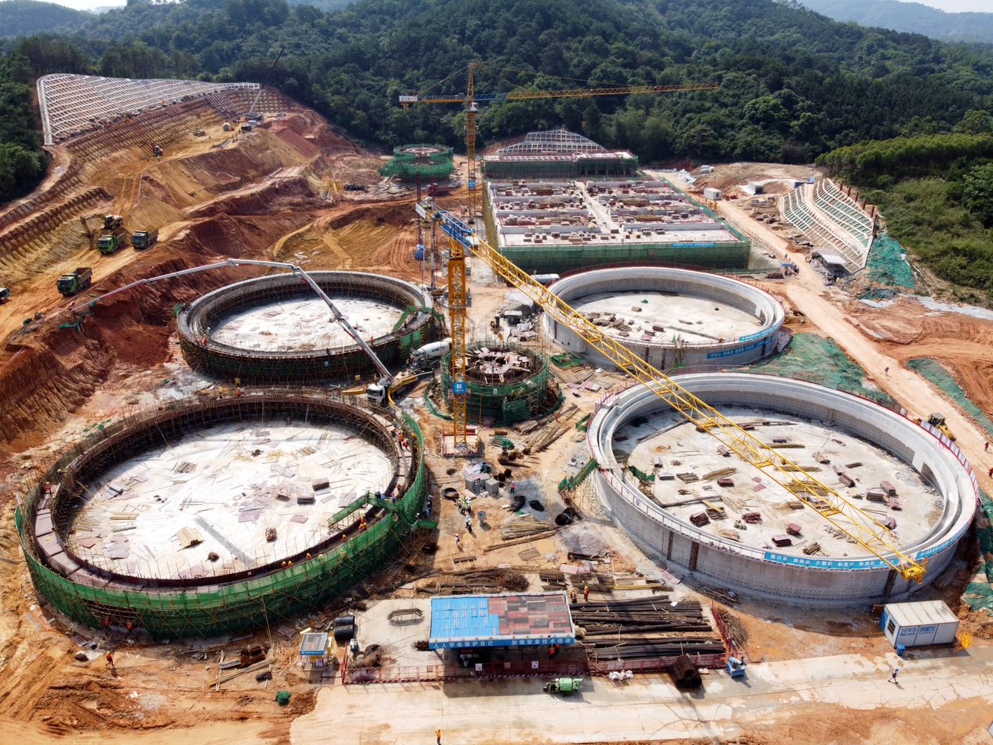 圖為五象污水處理廠水質提標及一期擴建工程五一假期期間建設攻堅現場(黃偉蔭供圖)