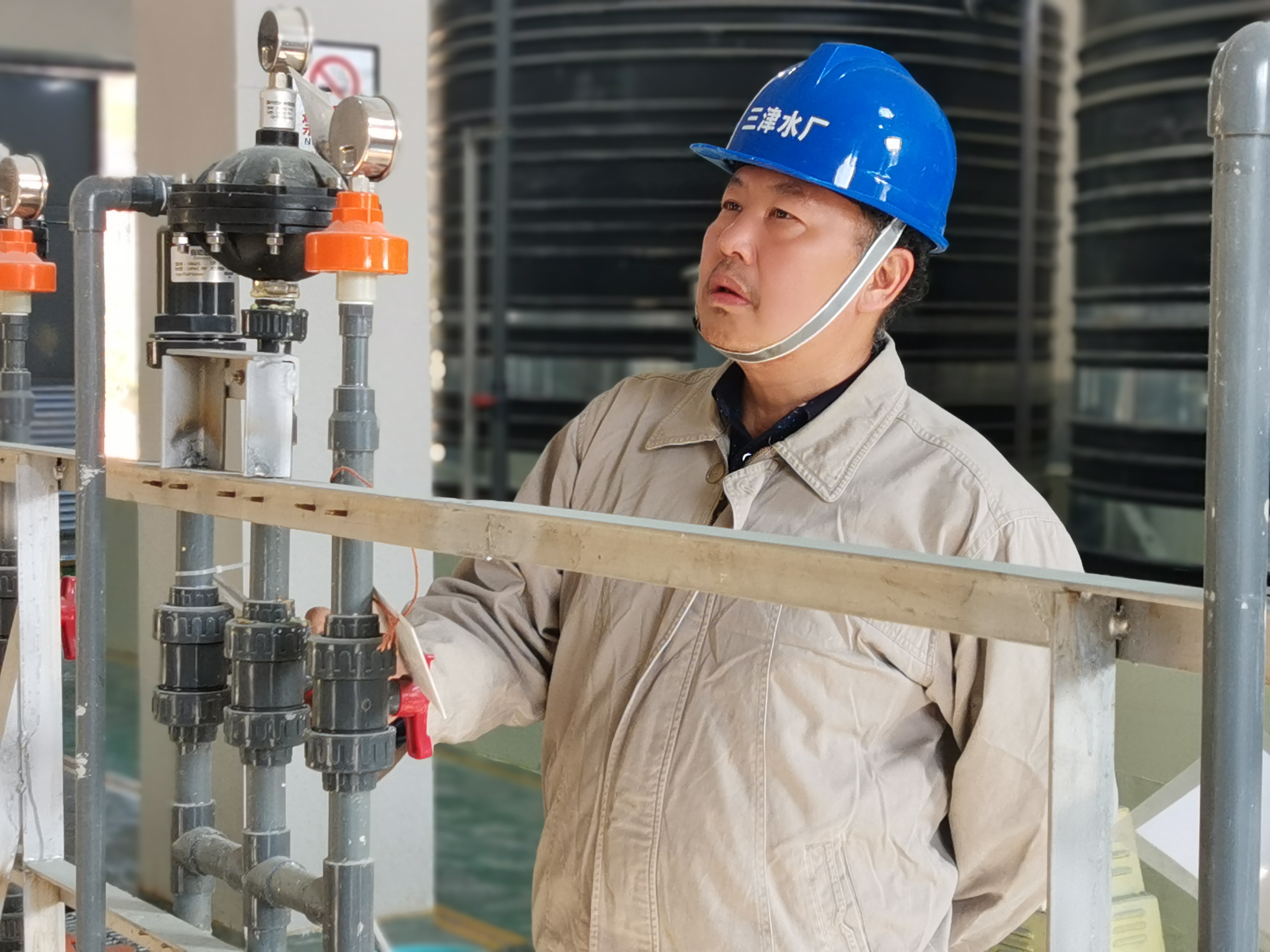 在一次次的技術改造中,易克穩聚焦生產,著眼于細微,通過“小改革”助力“大增效”。2021年初,易克穩攻克危化品的安全存儲及使用等難題,讓三津水廠供水消毒工藝系統從紙質方案變成符合水廠實際生產運行的項目,至此,三津水廠使用液氯作為制水消毒劑成為歷史,完成了一項重要的技術升級改造重任。